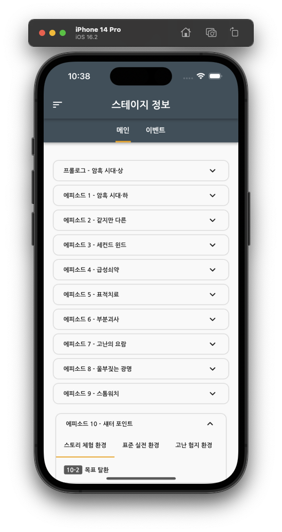 activity의 리스트와 그에 맞는zone의 배열만 로드하게 되고,특정 이벤트, 챕터를 터치하여 오픈했을 때
