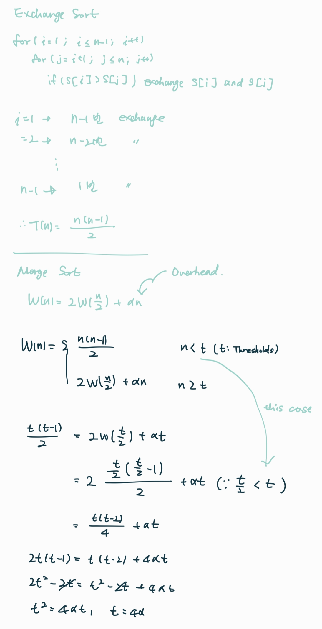 이 경우에는 n의 크기가 4a보다 작으면 exchange sort를 실행하는게 더 빨라진다.