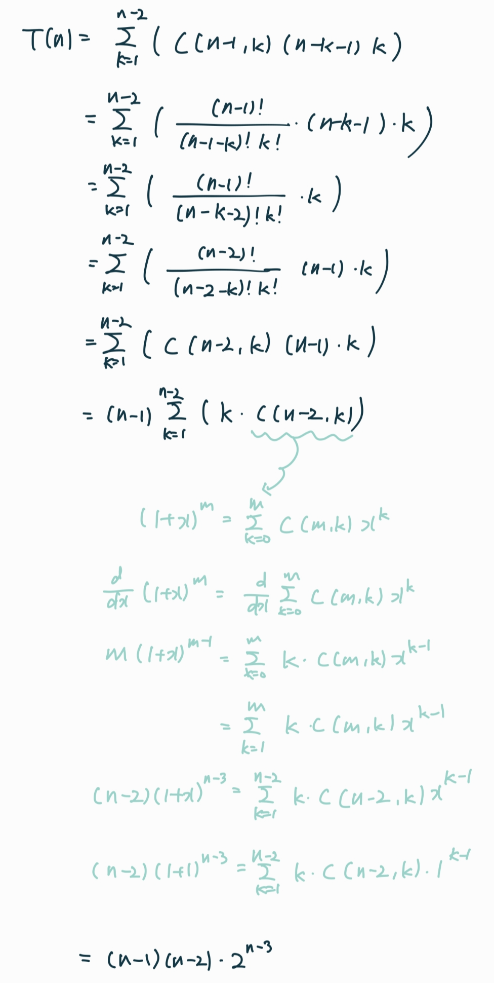 Within A-loop: (number of subset A)(n-k-1)k = C(n-1, k)(n-k-1)k times