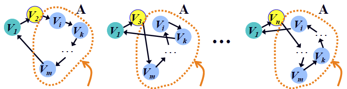 v1 - vn 를 지나 최적 경로 A를 지나 v1로 돌아오거나.