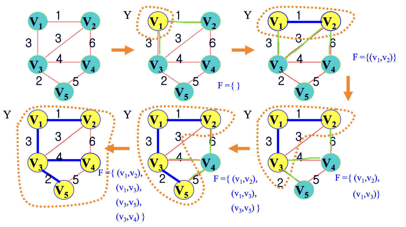 minimum spanning tree가 된다면, F는 promising하다.예시를 들어보자.