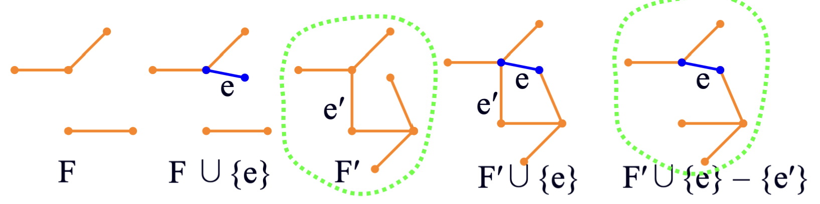 F union {e}가 F' union {e'} - {e}의 부분집합이기 때문에