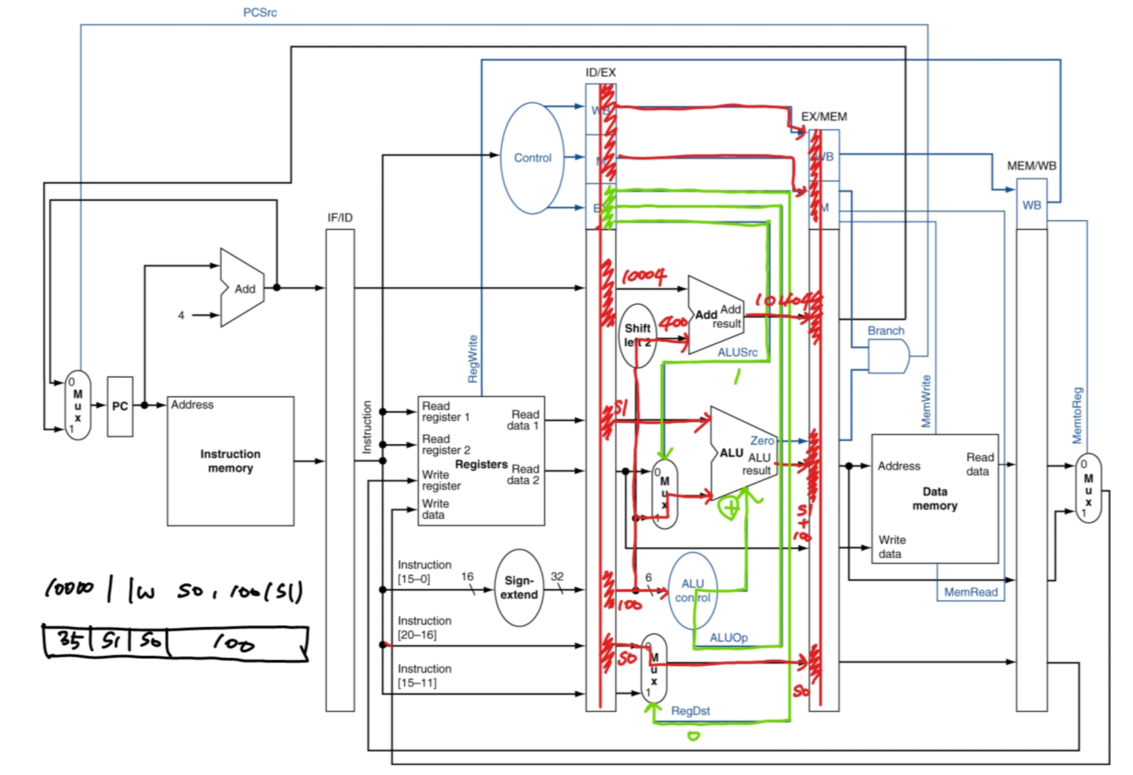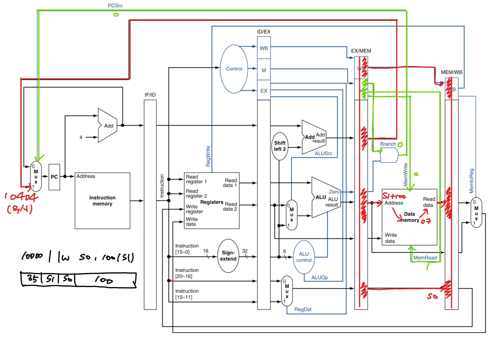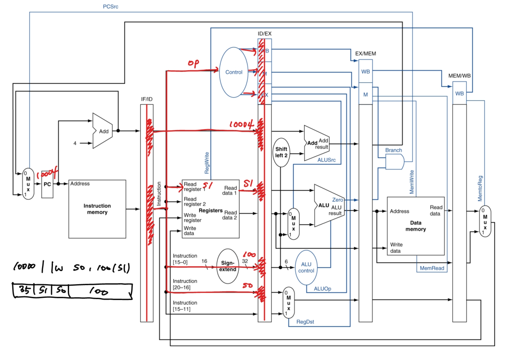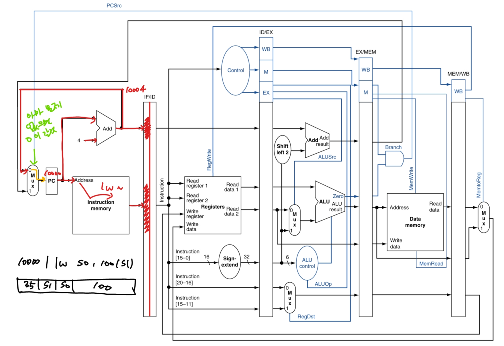 예로 들어 lw 명령어 하나의 흐름을 살펴보자.
