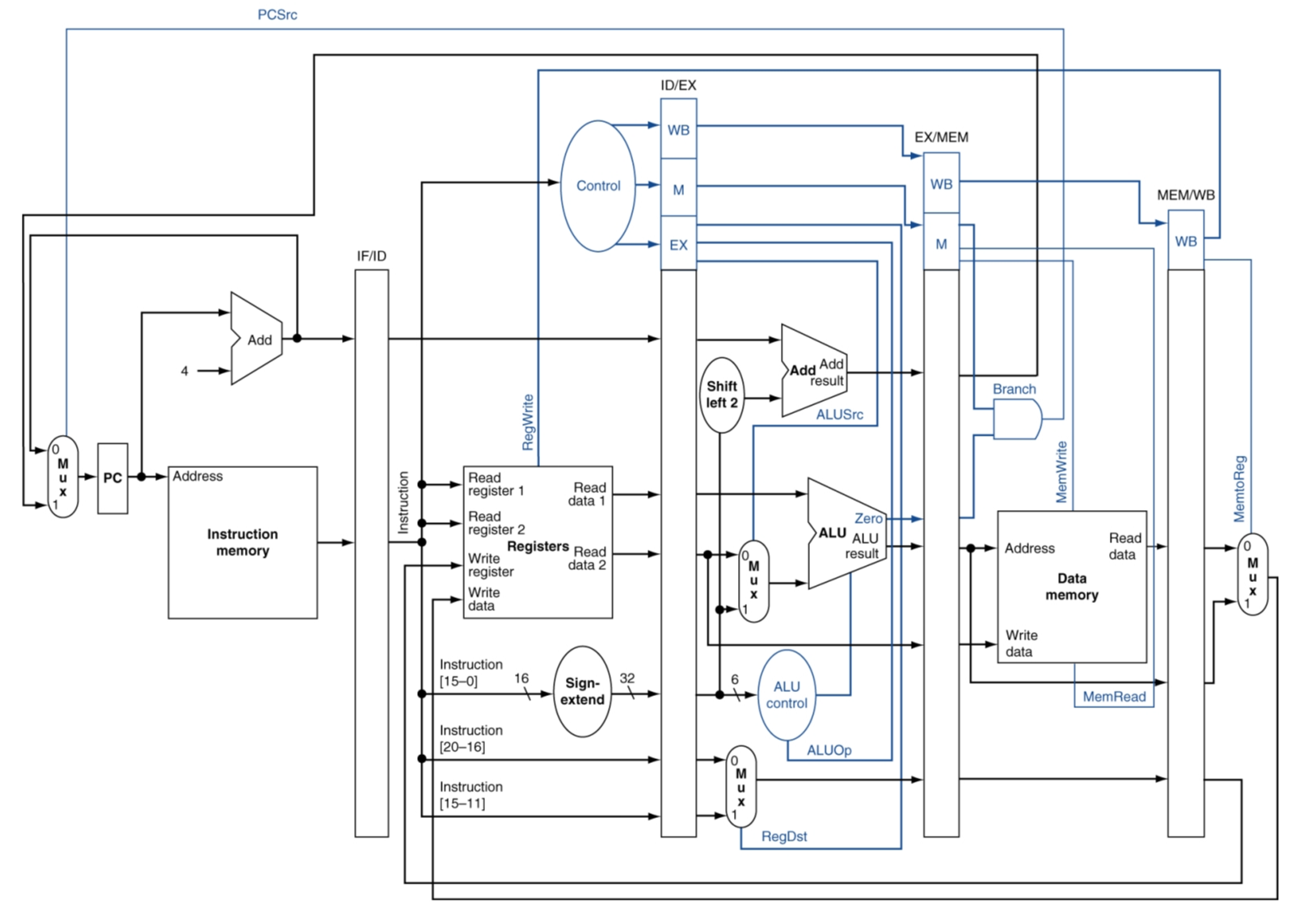 IF/ID, ID/EX, EX/MEM, MEM/WB에 명령어와 Control 시그널을 저장하여 각 단계에 맞게 전류를 보내