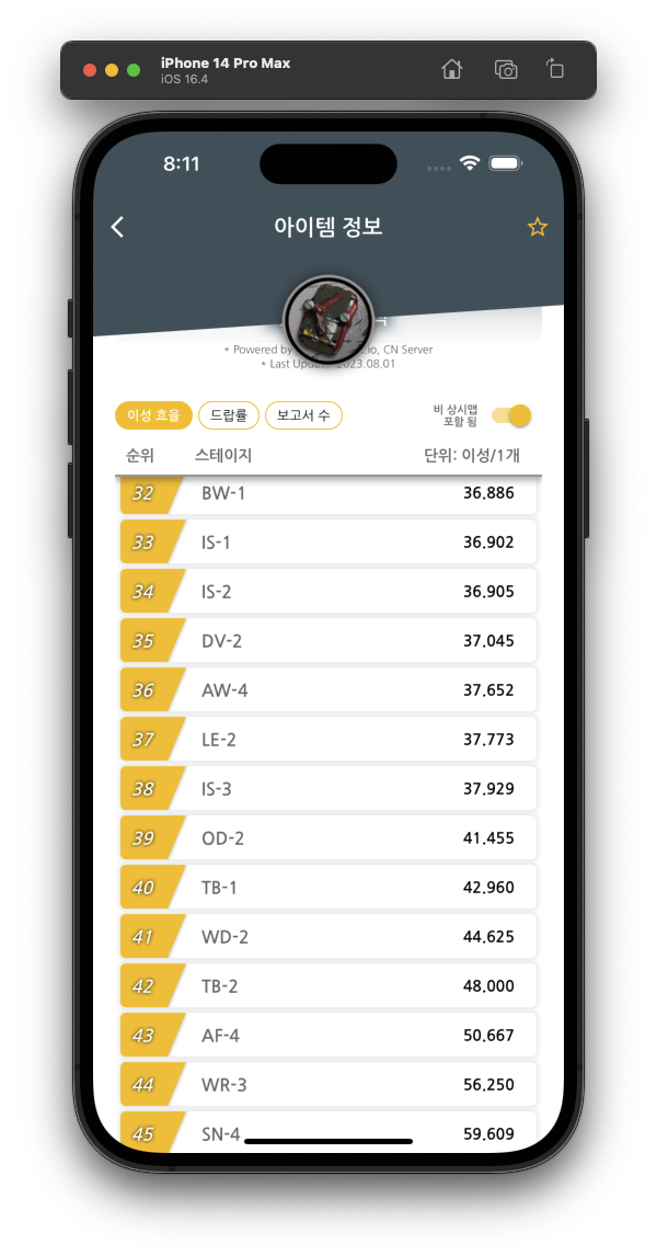 비슷한 문제가 현재 스테이지 리스트 화면에서도 있지만,