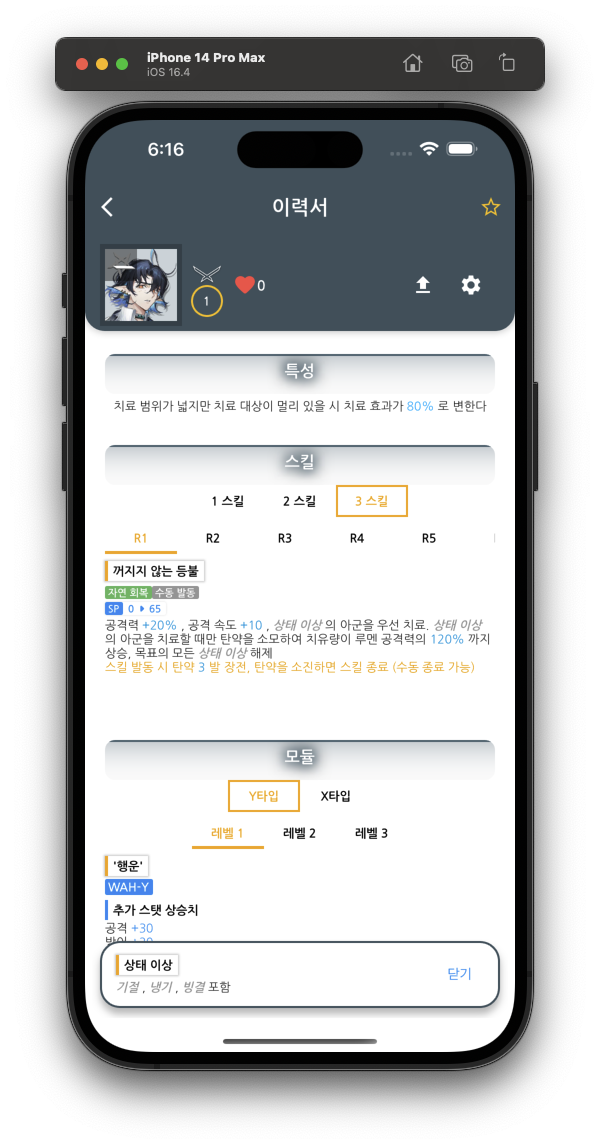 <Fig. 03> 오퍼레이터 육성 재료화면 구현하였습니다.