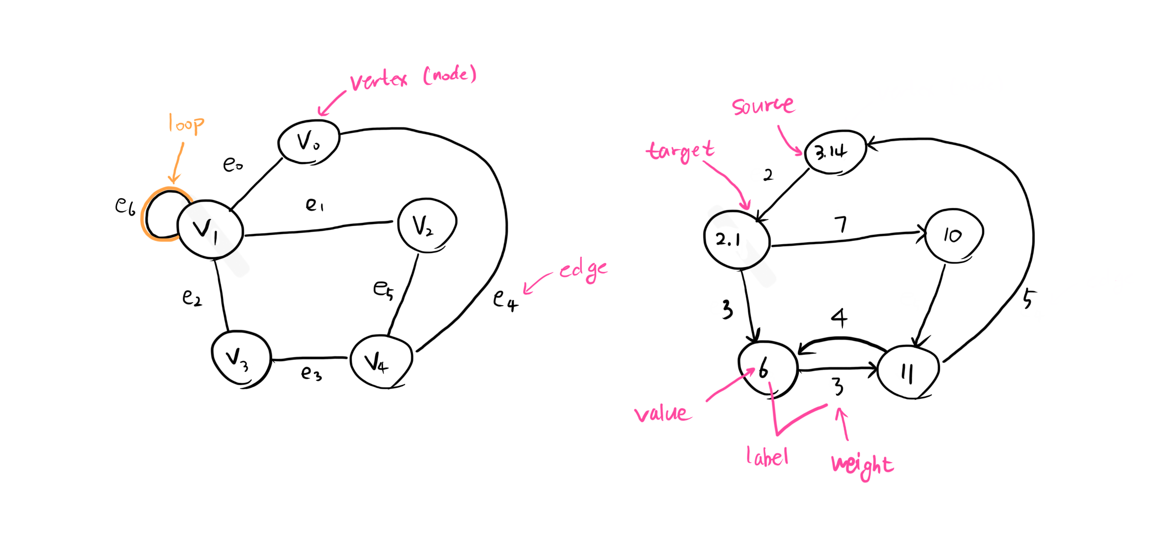 <Fig. 01: Undirected / Directed graph> Path: vertex들의 순서나열.