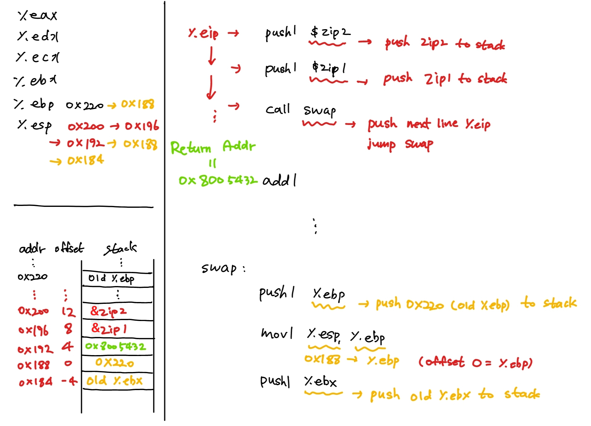 이제는 그 원리를 알아보기 위해 stack frame과 그 어셈블리 코드 동작방식을 알아보자.